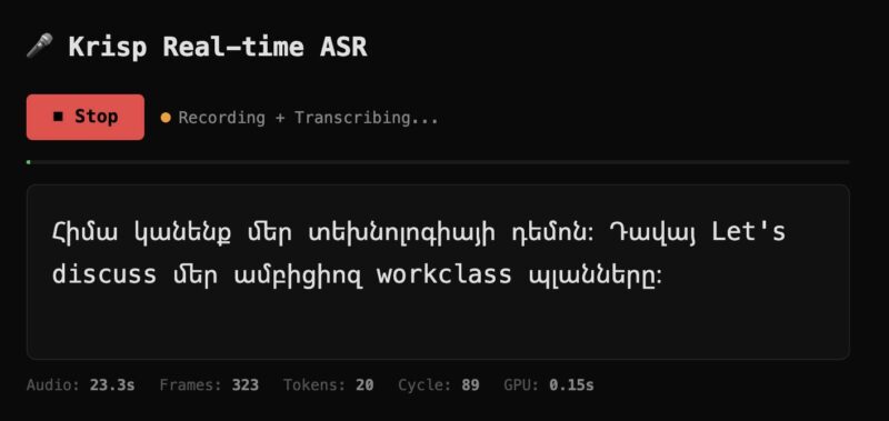 Speech-to-Text (STT), որը կհասկանա, թե մենք իրականում ինչպես ենք խոսում։ Խոսքը ոչ թե գրական հայերենի մասին է, այլ հայերենի, անգլերենի ու ռուսերենի խառը խոսույթը, որից լեզվաբանները, հավանաբար, պարզապես տխրում են։